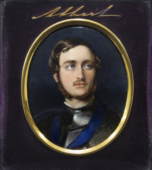 La obra que presentamos hasta ahora inédita, realizada durante el periodo en el que Essex trabajó para el príncipe Alberto. Está basada en el retrato de medio cuerpo de Robert Thorburn, miniatura, 29 x 23,5 cm, pintada hacia 1844 y conservada en la Royal Collection Trust. La reina Victoria escribió en su diario, con motivo de su cumpleaños el 24 de mayo: "(Príncipe Alberto) me ha encargado de nuevo unas cosas tan hermosas, entre ellas, su miniatura, una grande, pintada por Thorburn, un “chef d´oeuvre”, y así sucesivamente. No puedo decir lo hermoso que es, ni cómo representa exactamente el original querido. Mi amado Alberto pintado en armadura, que tanto deseaba- con azul muy oscuro. No puedo decir lo hermoso que es, ni cómo representa exactamente el original querido” (V. Remington, Victorian Miniatures in the Collection of Her Majesty the Queen. Londres, 2010 II, pág. 491 y 494).