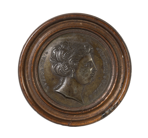Medalla circular de bronce con perfil de Vipsania, esposa de Tiberio.