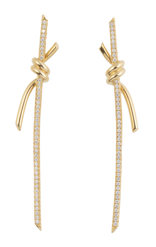 367. Pendientes TIFFANY & Co con diseño de barrita de brillantes anudada a barra de oro liso