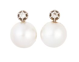 115. Pendientes tu y yo con perla australiana y rosetón de brillantes superior