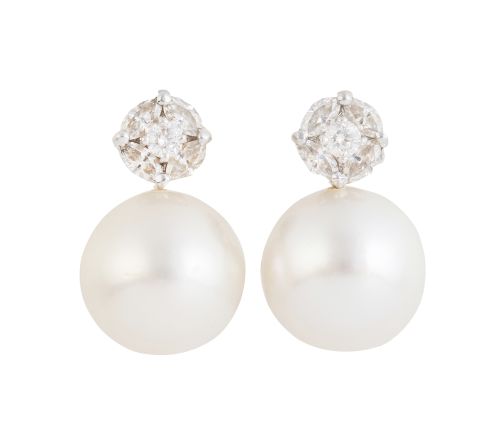 Pendientes tu y yo con perla australiana y rosetón de brillantes superior