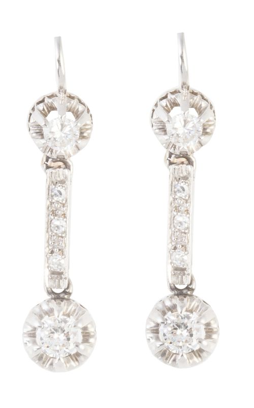 Home / SUBASTA MARZO 2025 / Pendientes largos de brillantes de pp. S. XX con dos brilla