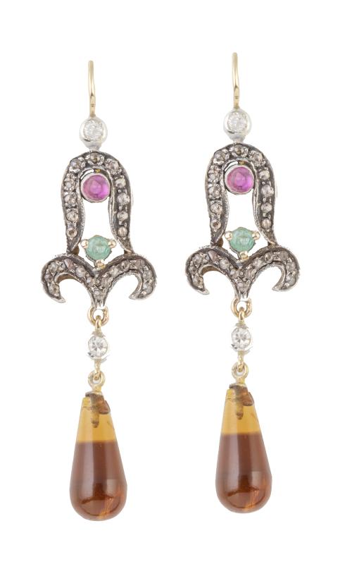 Home / SUBASTA MARZO 2025 / Pendientes largos con perillas de cuarzo citrino colgante d