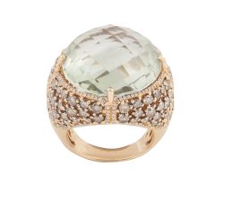 Sortija con cabuchón de coral engastado en ocho grandes garras