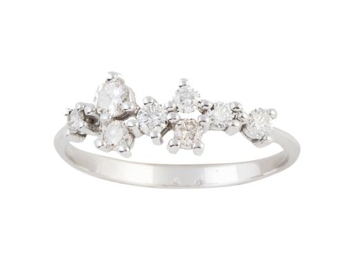 Sortija con frente de ocho brillantes dispuestos de forma asimétrica, engastados en garras