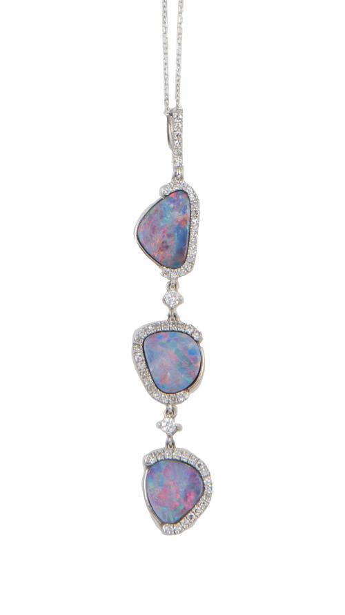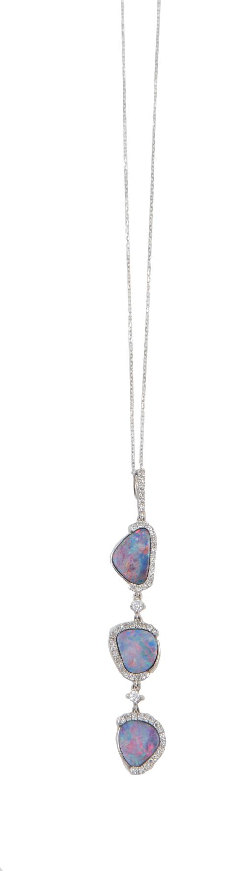 Pendentif con tres dobletes de ópalos en marcos asimétricos de brillantes