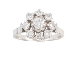 182. Sortija rosetón de brillantes con brillante central elevado en garras angulares