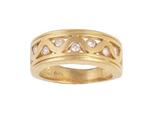 Home / SUBASTA MARZO 2025 / Sortija media alianza con siete brillantes en diseño fronta