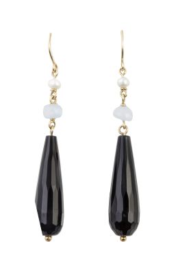 22. Pendientes largos de pp. S. XX con perlitas y diamantes