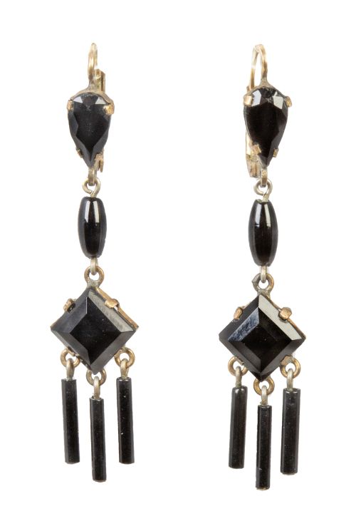 Home / SUBASTA MARZO 2025 / Pendientes largos de pp. S. XX con cuentas de cristal negro
