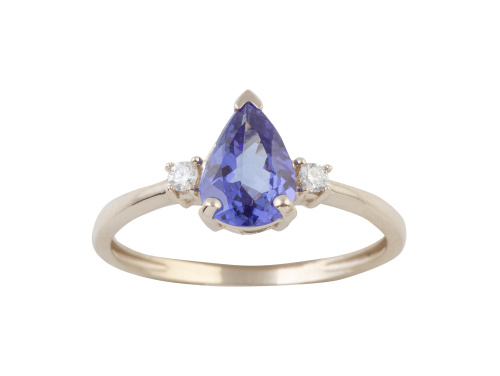 Sortija con tanzanita talla perilla flanqueada por dos brillantes