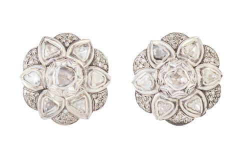 274. Pendientes flor de diamantes tabla en centro y pétalos, con orla de pétalos exteriores de pavé de brillantes