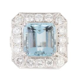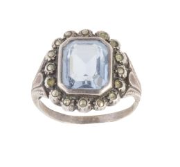 317. Sortija flor de brillantes calada estilo Art-Decó, con marco exterior lobulado de zafiros calibrados