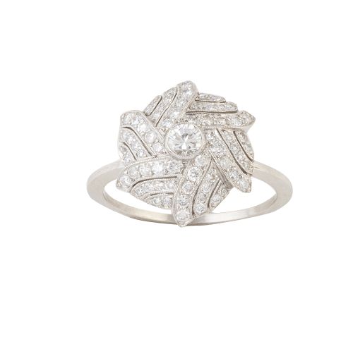 329. Sortija circular de brillantes con chatón de brillante central y alas de brillantes alrededor