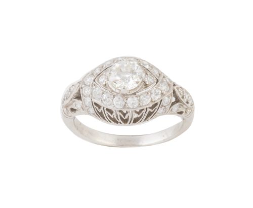 335. Sortija de brillantes Art-Decó con brillante central de 0,60 ct aprox, con galería bombée calada