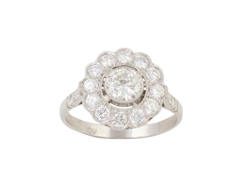 Home / SUBASTA MARZO 2025 / Sortija de rosetón de brillantes con centro de 0,60 ct aprox