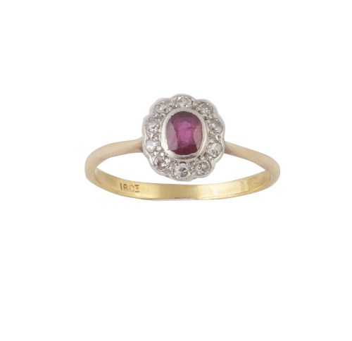 Sortija de pp. S. XX con rubí central orlado de brillantes