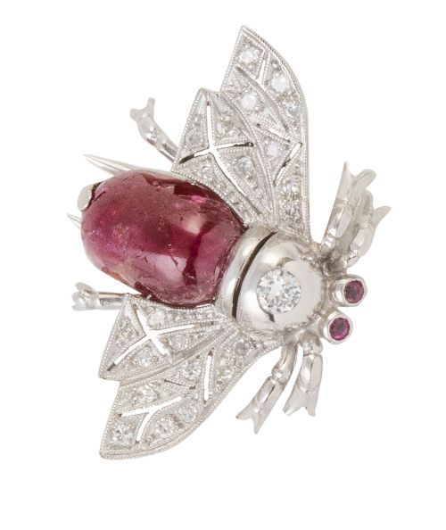 358. Broche abejorro con cuerpo de cabuchón de rubí y alas de brillantes