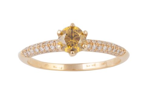 403. Sortija con brillante fancy vivid yellow orange de 0,54 ct con pavé de brillantes en los brazos de la montura