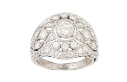 424. Sortija flor Art-Decó con brillante central de talla antigua de 1 ct aprox