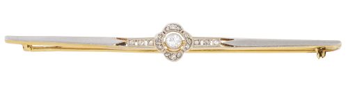Broche barra de pp. S. XX, con centro de flor de diamantes con brillante en chatón central
