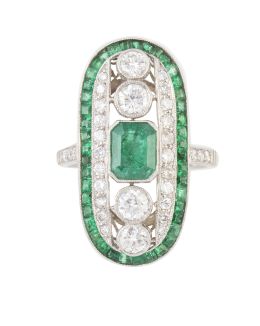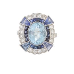 Home / SUBASTA MARZO 2025 / Sortija Art-Decó de brillantes y zafiros talla triangular