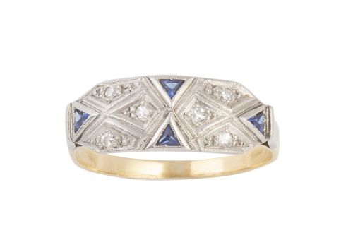 88. Sortija Art-Decó de brillantes y zafiros talla triangular