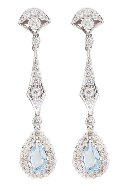 Home / SUBASTA MARZO 2025 / Pendientes largos de brillantes con lágrimas de aguamarinas