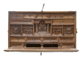 “Scrivania” en madera de nogal, sobre patas de lira en esviaje. Trabajo Italiano. S.XVII.