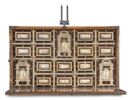 Medidas: 85.5 x 82 x 122.5 cm Tapa abatible, con cajones en el interior. El mueble conserva una bonita pátina.
