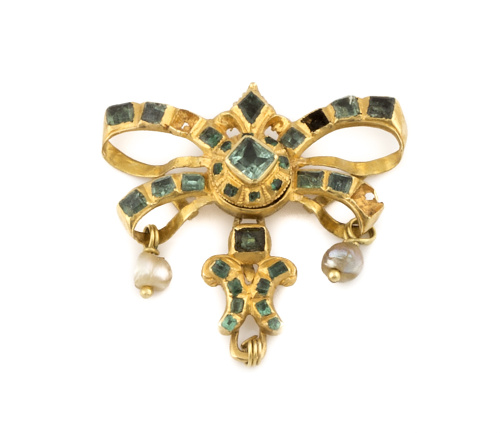 1. Broche lazo de esmeraldas y perlas colgantes S.XVIII-XIX