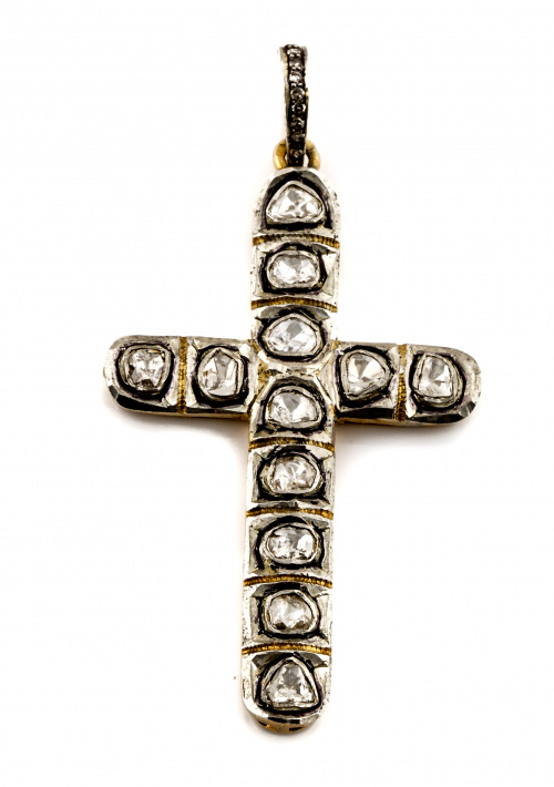 25. Cruz colgante portuguesa de diamantes de talla antigua en brazos rectos