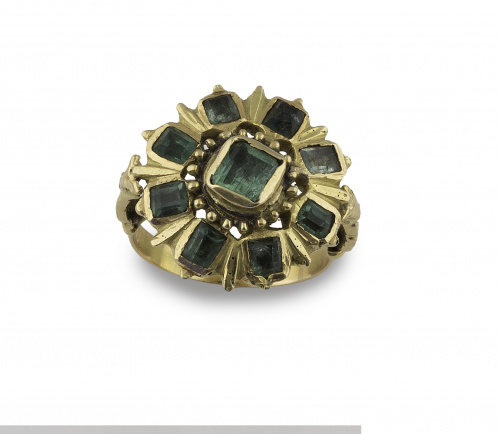 Sortija flor de esmeraldas S.XVIII-XIX con montura labrada en oro de 18K