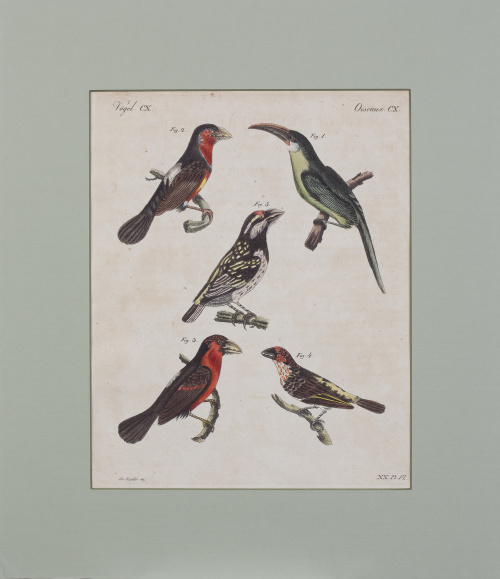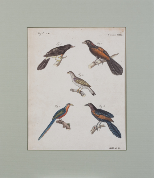 Dos grabados iluminados a mano. 22, 5 x 18 cm.