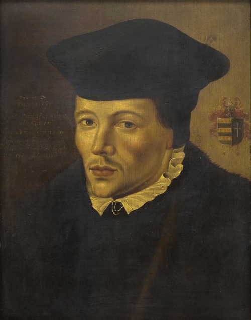 SEGUIDOR DE JAN VAN SCOREL (1495-1562)Retrato del pastor Eylard Dircksz van Waterland (1530-1573) con su escudo de armas.