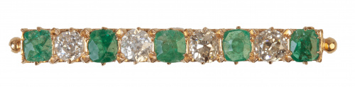 13. Broche barra de pp. S. XX con cinco esmeraldas alternado con cuatro diamantes talla antigua