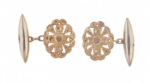 Gemelos S. XIX con óvalos lobulados de zafiros blancos en trabajo calado
