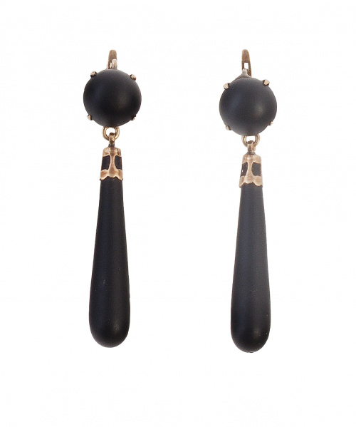 Pendientes largos S. XIX de azabache en perilla colgante y botón superior