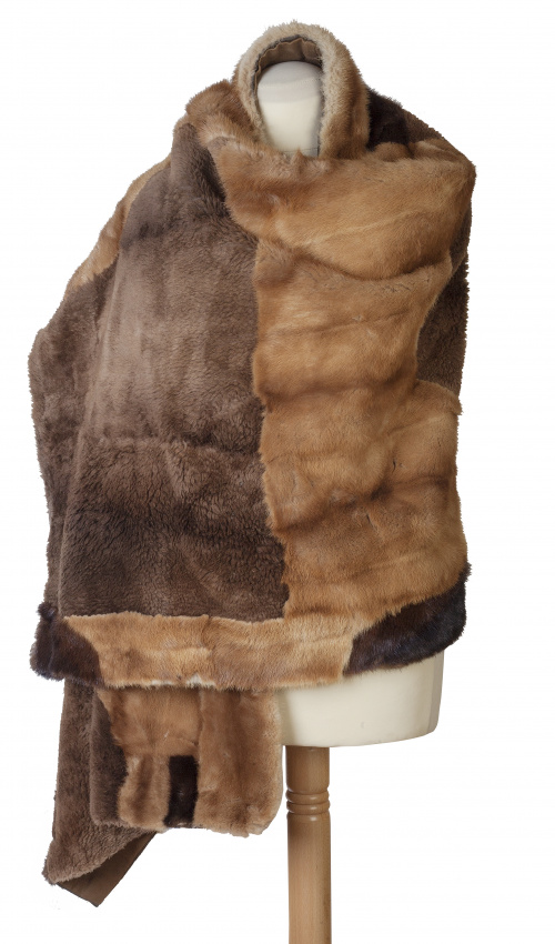 347. Manta de piel de visón y cordero combinadas en diferentes tonos de castaño claro a marrón