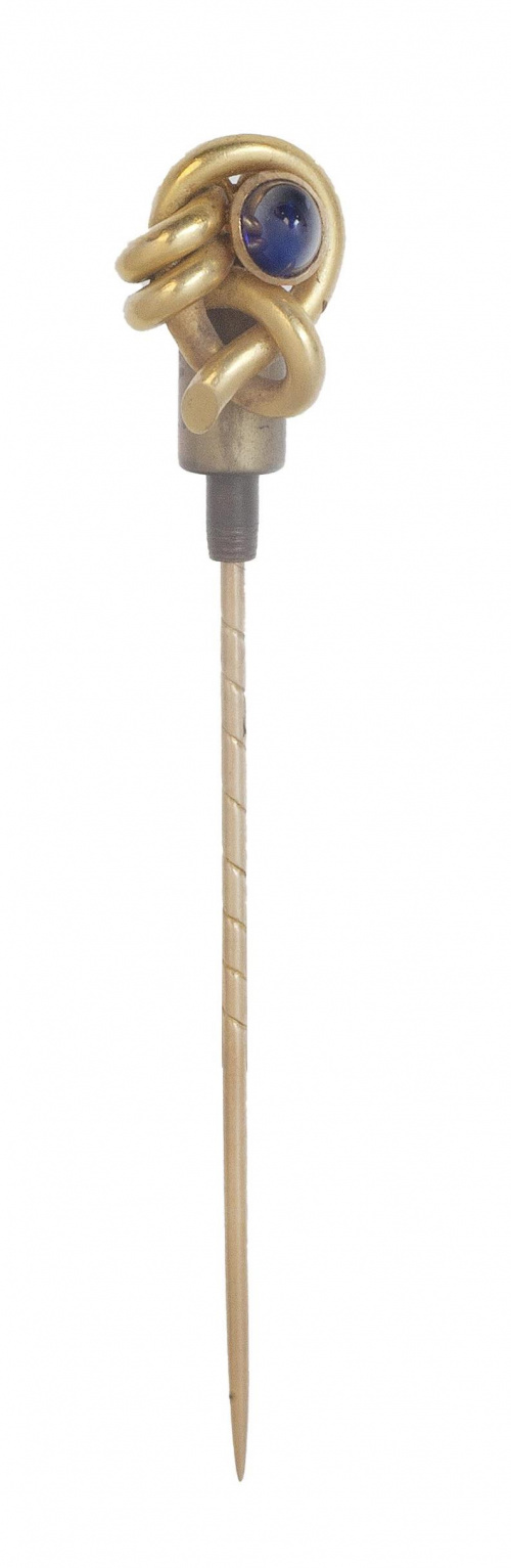 47. Alfiler de corbata de pp. S XX con diseño de nudo y cabuchón de zafiro de perfil elevado