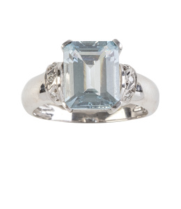 7. Sortija S. XVIII-XIX con esmeralda central flanqueada por tres diamantes a cada lado