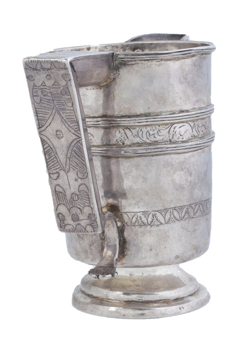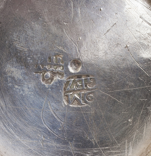 Un ejemplo similar al que subastamos, pero de plata dorada, se conserva en el Museo Arqueológico Nacional con el número de inventario (2001/1241/1). También otro parecido aparece reproducido en la Enciclopedia de la Plata Española y Virreinal. Fernández, Alejandro, Munoa, Rafael y Rabasco, Jorge. Madrid 1984, pág 319, número 54.