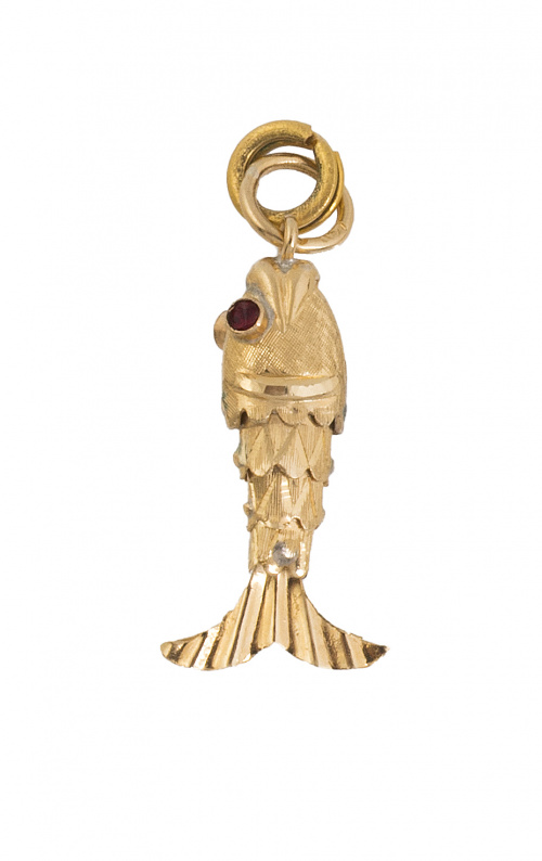Home / SUBASTA DE JUNIO DE 2021 / Pez colgante articulado con ojos de rubíes sintéticos