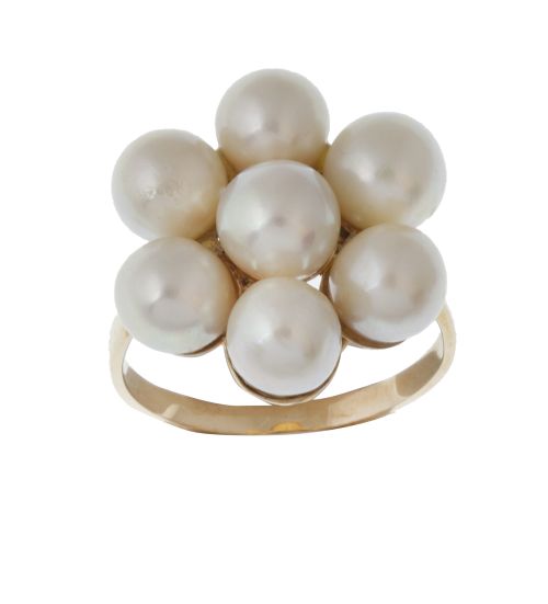 146. Sortija con seis perlas de 6,5 mm que componen una flor
