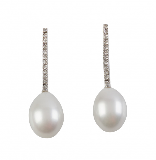 Pendientes largos con perilla de perla colgante de línea en rivière de brillantes