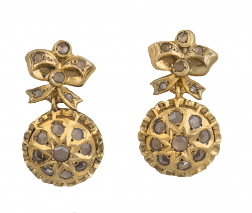 Home / SUBASTA DE JUNIO DE 2021 / Pendientes largos populares de pp. S. XX con lazo y botón c