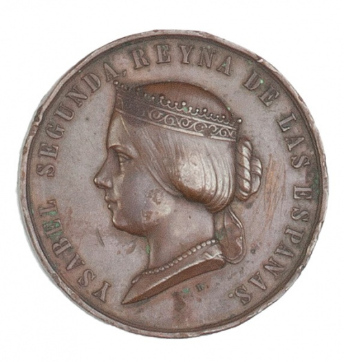 Anverso: Busto de perfil de la Reina Isabel II mirando a la izquierda. Inscripción: "Ysabel Segunda Reyna de las Españas"