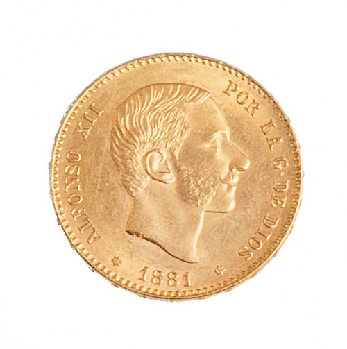 Moneda de 25 ptas de oro de Alfonso XII.1881.MS. M.