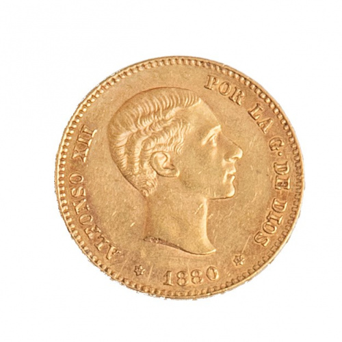 Moneda de 25 ptas de oro de Alfonso XII.1880. MS.M.