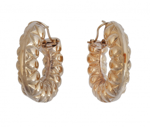 Home / SUBASTA DE JUNIO DE 2021 / Pendientes con diseño de criollas anchas con volumen gallon